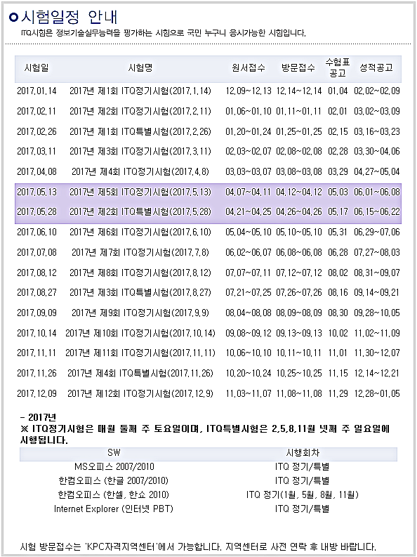 2017년 ITQ 시험일정